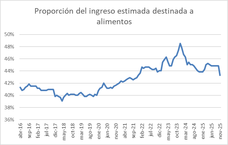 En este momento, lo que sucede es que los hogares usan mayor proporción de sus ingresos en alimentos; resignan el consumo de otros bienes y por ende, la distancia entre la línea de indigencia y pobreza se achica.